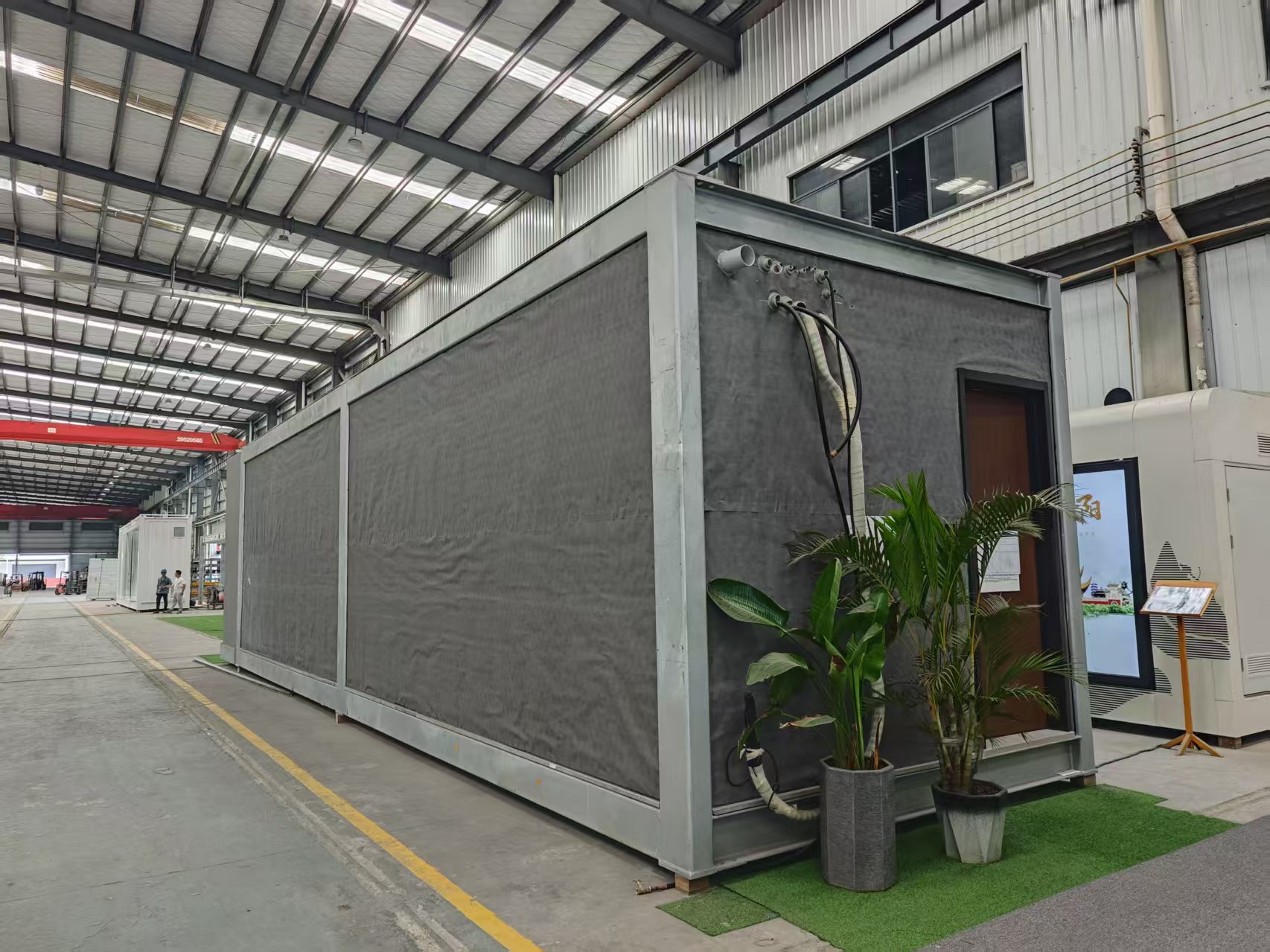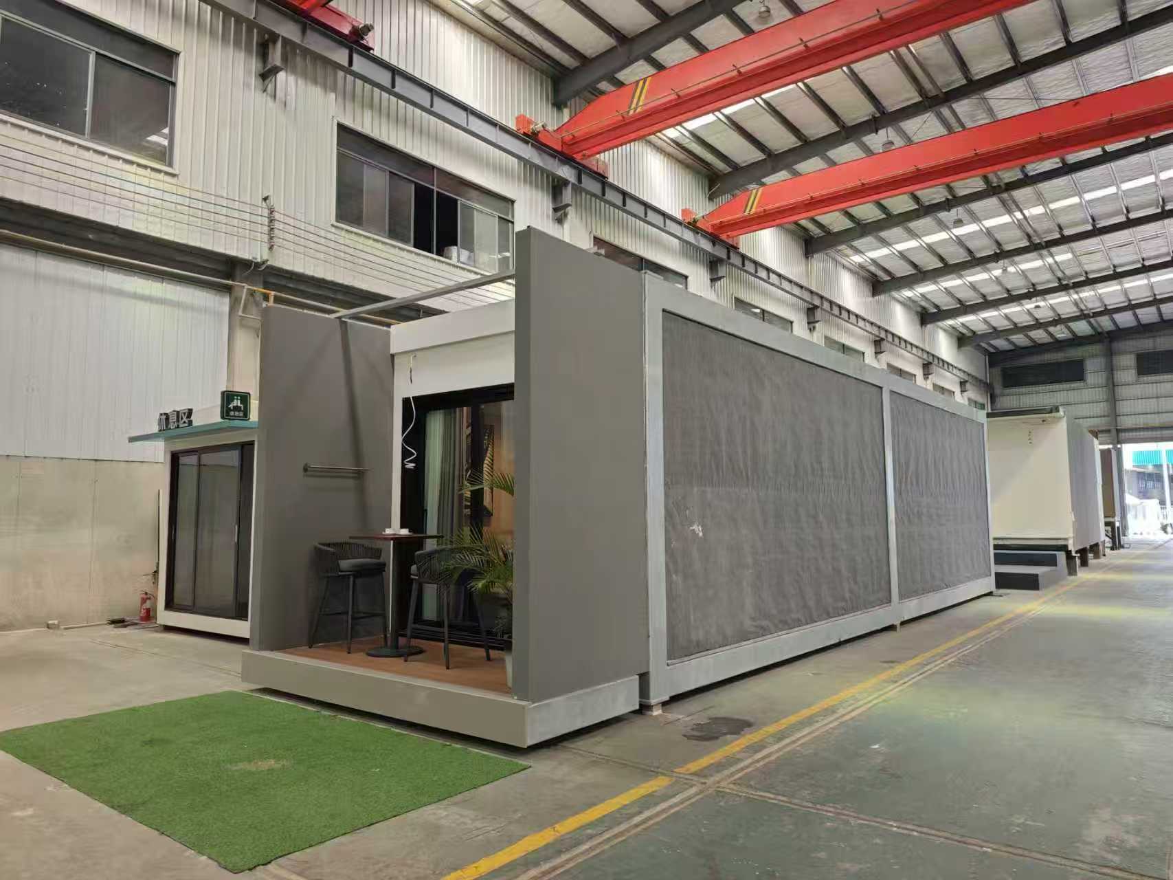 2、The exterior walls of the project are composed of decorative panels, double-layer 12.5mm fire-resistant gypsum board, 100mm light steel keel, rock wool, double-layer 12.5mm fire-resistant gypsum board and waterproof fabric, which can achieve one hour of fire resistance and sound insulation of 55 decibels.